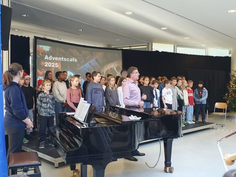 Traditionell findet in der Vorweihnachtszeit für die Schülerinnen und Schüler der fünften Klassen, deren Eltern und die beteiligten Lehrkräfte ein Advents-Café mit einem Rahmenprogramm statt. Auch in diesem Jahr zeigte sich, dass dieser Termin im Jahresverlauf sehr geschätzt wird, da bereits beim Einbiegen auf das Schäfersfeld dicht geparkte Autos über den Schulbereich hinaus zu sehen waren. In der weihnachtlich geschmückten Aula erwartete die Eltern bei Kaffee und Kuchen ein gemütliches Beisammensein, das durch engagierte Aufführungen der beiden fünften Klassen aufgelockert wurde. Die Erlöse des Adventsnachmittags werden an den Kältebus in Stuttgart gespendet. Eine gute Gelegenheit, der Schulgemeinschaft eine besinnliche Adventszeit zu wünschen!