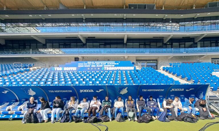 Im Rahmen der Einheit Fußball haben die Neuntklässlerinnen und Neuntklässler des Sportprofils die Anlagen der TSG Hoffenheim besucht. Dabei erhielten sie bei einer Stadionführung Einblicke in die Profikabine sowie weiter Bereiche des Stations. Anschließend durften die Jugendlichen auf dem Trainingsgelände den Footbonaut ausprobieren. Dieses Gerät schult die Handlungsschnelligkeit in Drucksituationen.
